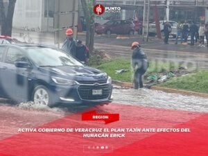 Xalapa, Ver.- Ante la presencia del fenómeno meteorológico “Erick”, el Gobierno del Estado de Veracruz activó el Plan Tajín, desplegando un operativo de respuesta inmediata en regiones afectadas del norte y centro de la entidad, con acciones de evacuación, rescate, vigilancia y apoyo humanitario.