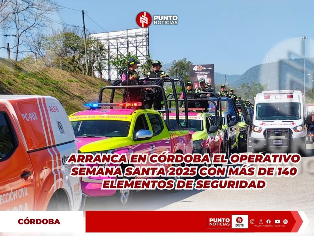Córdoba, Ver.- Este viernes dio inicio el Operativo Semana Santa 2025 en el municipio de Córdoba, con la participación de más de 140 integrantes de distintas corporaciones de seguridad, así como personal de Protección Civil, quienes trabajarán en la vigilancia y atención durante el periodo vacacional.