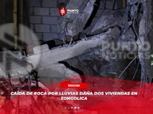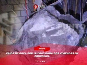 Caída de roca por lluvias daña dos viviendas en Zongolica