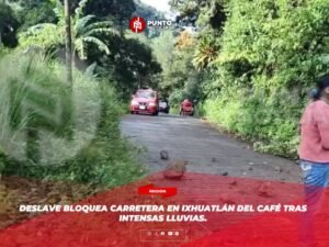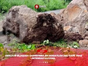 Deslave bloquea carretera en Ixhuatlán del Café tras intensas lluvias.