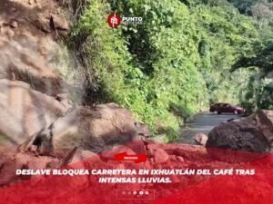 El deslizamiento de material dejó completamente cerrada la circulación luego de que una enorme piedra cayera sobre la carretera y descendiera hacia la barranca de La Ixhuatequilla, imposibilitando el paso vehicular en la zona.