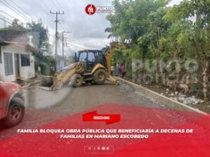 Mariano Escobedo, Ver. – La construcción de una importante obra de infraestructura en la calle Camino a Chicola, colindante con la unidad habitacional Palmira, en Mariano Escobedo fue detenida debido a la oposición de una familia que, según vecinos y autoridades, no cuenta con la legal posesión del predio.