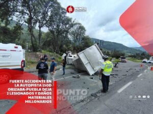 Fuerte accidente en la Autopista 150D Orizaba-Puebla deja 2 lesionados y daños materiales millonarios