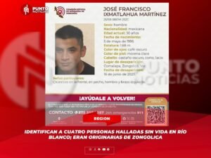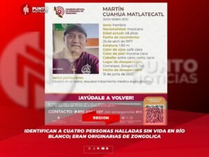 Omealca, Ver. — Este viernes 20 de junio fueron identificados oficialmente los cuerpos localizados a orillas del Río Blanco, en la localidad de Xuchiles, municipio de Omealca. Se trata de cuatro personas originarias de Zongolica, integrantes del centro de rehabilitación Nimiztlazohotla A.C., reportadas como desaparecidas el pasado 16 de junio.