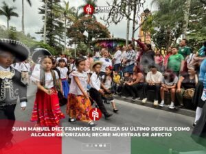 Orizaba, Ver.- En un ambiente festivo y lleno de color, el presidente municipal de Orizaba, Juan Manuel Diez Francos, encabezó este martes el que fue su último desfile patrio al frente de la administración.