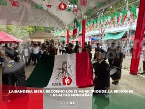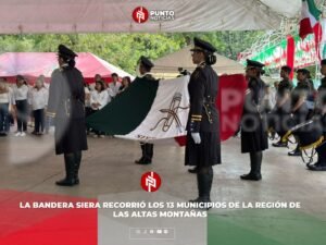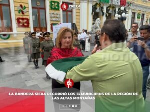 Orizaba, Ver.– Conmemorando el trigésimo cuarto aniversario de su recorrido, la Bandera Siera volvió a ondear en la región de las Altas Montañas, donde autoridades municipales y ciudadanos participaron en actos cívicos y homenajes a este símbolo patrio que ocupa un lugar especial en la historia de la Independencia de México.