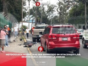 Ixtaczoquitlán, Ver.– Un motociclista perdió la vida la tarde de este jueves de manera trágica, luego de ser embestido y arrastrado por varios metros por el conductor de una camioneta, quien tras el accidente se dio a la fuga, dejando la unidad abandonada en el lugar.