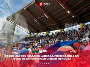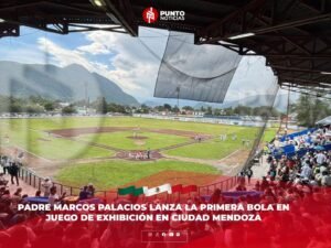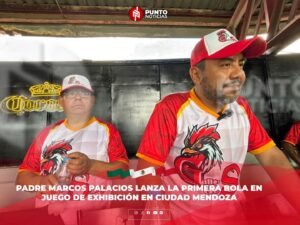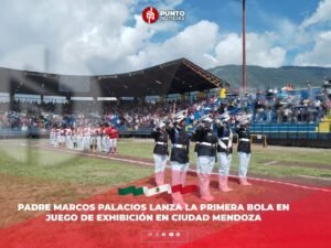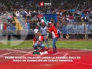 Padre Marcos Palacios lanza la primera bola en juego de exhibición en Ciudad Mendoza