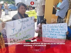 Por su parte en Atexcalco, padres y autoridades comunitarias pidieron la asignación de un docente adicional para la primaria “Venustiano Carranza”, que actualmente funciona con solo dos profesores para un total 61 estudiantes, lo que ha provocado que grupos de hasta 30 alumnos compartan un mismo salón.