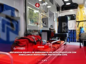 La nueva ambulancia tipo II, está completamente equipada conforme a la Norma Oficial Mexicana NOM-034 de la Secretaría de Salud, lo que garantiza su capacidad para atender urgencias, accidentes, traslados programados y emergencias médicas de diversa índole.