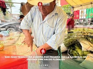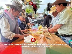 San Juan Texhuacan adorna por primera vez la Catedral de Orizaba con arcos florales