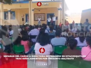 Ixtaczoquitlán, Ver.– La directora de la escuela primaria “Josefa Ortiz de Domínguez”, ubicada en la comunidad de Sumidero, fue separada de su cargo de manera provisional luego de la manifestación y los señalamientos de padres de familia por presunto maltrato hacia los alumnos.