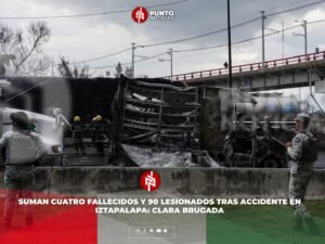 Ciudad de México.– La jefa de Gobierno, Clara Brugada, informó que, tras el incidente ocurrido la tarde de ayer en la alcaldía Iztapalapa, al corte de las 22:30 horas se tiene registro de cuatro personas fallecidas y 90 lesionadas, de las cuales 10 ya fueron dadas de alta gracias a la atención médica recibida.