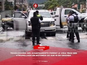 Trabajadora del Ayuntamiento pierde la vida tras ser atropellada en rotonda de Sur 10 en Orizaba