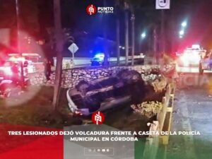 Tres lesionados dejó volcadura frente a caseta de la Policía Municipal en Córdoba