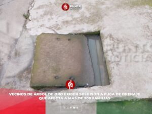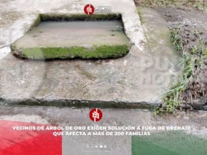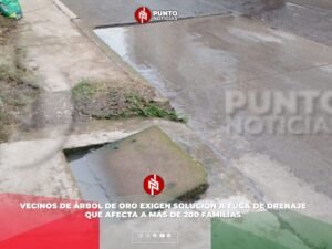 Vecinos de Árbol de Oro exigen solución a fuga de drenaje que afecta a más de 200 familias
