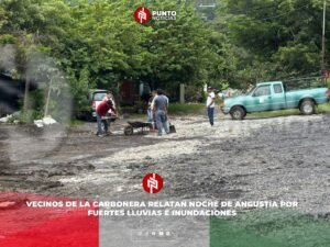 Nogales, Ver.- Habitantes de la colonia La Carbonera vivieron momentos de gran angustia la tarde y noche del sábado, cuando las intensas lluvias provocaron el desbordamiento de drenajes y la llegada de agua proveniente del cerro, lo que inundó varias viviendas y generó afectaciones materiales y riesgos para la salud.