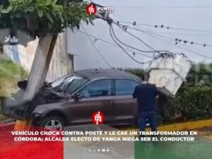 Vehículo choca contra poste y le cae un transformador en Córdoba; alcalde electo de Yanga niega ser el conductor