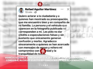 Tras el accidente, en redes sociales comenzó a circular la versión de que el vehículo era conducido al parecer por el alcalde electo de Yanga, Rafael Aguilar Martínez, conocido como “Lucho”, del Partido Revolucionario Institucional (PRI).