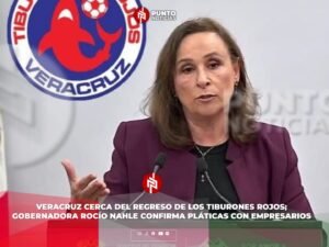 Xalapa, Ver. – La gobernadora de Veracruz, Rocío Nahle García, anunció que mantiene conversaciones con empresarios, entre ellos Fidel Kuri Grajales, para concretar el regreso del fútbol profesional al estado y con ello devolver a los aficionados a los Tiburones Rojos en el estadio Luis “Pirata” Fuente.